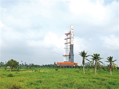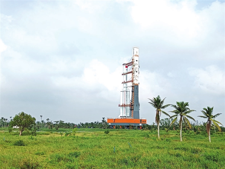 11月13日,天舟八号货运飞船与长征七号遥九运载火箭组合体垂直转运中。