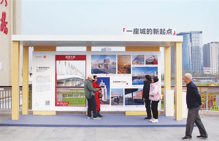“三晋第一街·城市影像展”开展以来吸引市民前往打卡。图为11月18日,市民在迎泽大桥桥西桥头堡欣赏参展照片。张澍宏 摄