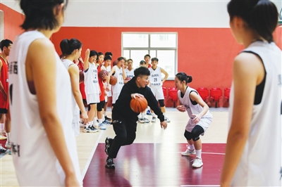 十一月十七日,太原市进山中学篮球队队员正在加紧训练,备战第一届全国青少年三大球运动会决赛。王韵菲 摄