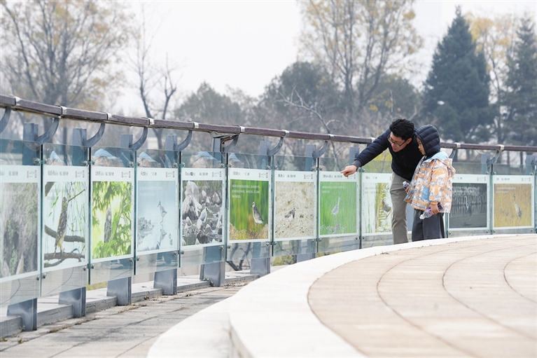 11月19日,市民正在长风商务区防鸟撞鸟类科普长廊浏览。作为我省首个防鸟撞鸟类科普长廊,在保护鸟类的同时还科普了鸟类常识。