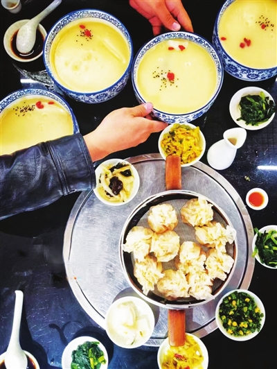 那天,我和父亲还有姐夫6点多到了清和元,队伍已经排到门口,餐厅一位难求。喝头脑多是一家人或与朋友结伴而来。因位置紧张,众人各司其职,有占位置的,有买票的,有排队端饭的。坐在那儿,听不到闲聊声,只闻喝头脑的吸溜声,光听着就觉得香。