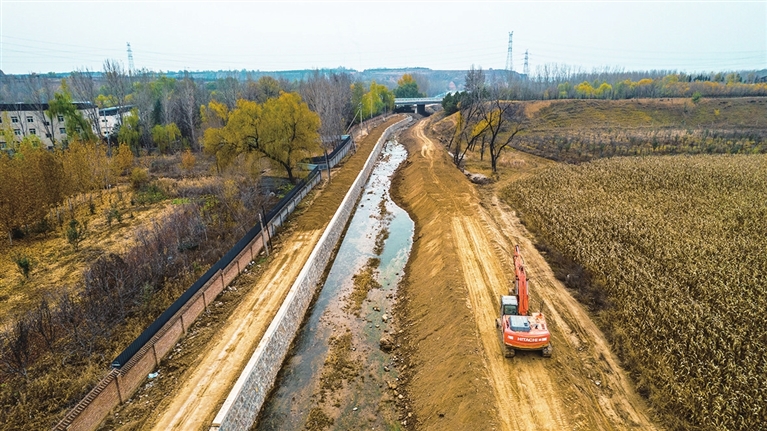 11月22日,泥屯河尖草坪区段防洪能力提升工程正有序推进。该工程建成后,将进一步改善河道行洪能力,补齐防洪短板,筑牢防洪安全屏障。王韵菲 摄