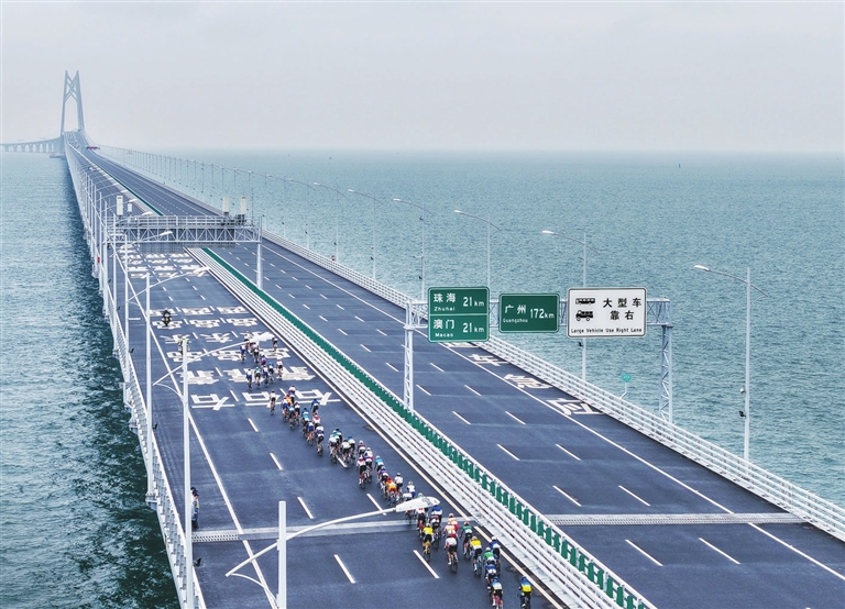 当日,2024粤港澳公路自行车赛暨第十五届全国运动会公路自行车测试赛举行,比赛跨越粤港澳三地,途经港珠澳大桥,赛道全程230公里。新华社记者 刘大伟 摄