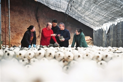 11月25日,杏花岭区中涧河镇长沟食用菌种植基地,高级农艺师聂利胜正在同种植户交流冬季食用菌生产管理情况。该种植基地占地面积66亩, 年产量过百万斤,直接带动20余名村民就业。牛利敏 摄
