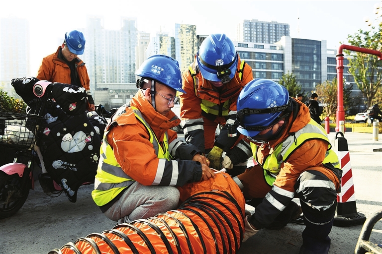 11月25日,太原供水集团城北营销分公司管道队尖刀班的维修人员在迎泽大街万邦国际南水表井外对自来水管进行冬季巡检。寒潮来袭,该公司全力做好排查和整改设施隐患,保障冬季供水安全稳定。