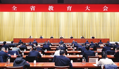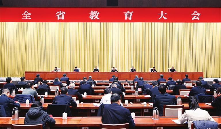会议充分肯定近年来全省教育事业发展取得的成绩,对教育强省建设各项重点工作作出全面部署。指出,要坚持不懈用习近平新时代中国特色社会主义思想铸魂育人,加强和改进新时代学校思想政治教育,培养德智体美劳全面发展的社会主义建设者和接班人。要统筹实施科教兴省、人才强省、创新驱动发展战略,深化高等教育内涵式发展,支持高校深化政产学研用合作,加快构建职普融通、产教融合的职业教育体系,更好发挥教育支撑引领高质量发展的重要功能。要坚持以人民为中心发展教育,推动义务教育优质均衡发展,促进学前教育普及普惠和高中阶段学校多样化发展,优化区域教育资源配置,统筹推进教育数字化和学习型社会建设,不断提升教育公共服务的普惠性、可及性、便捷性,让教育改革发展成果更多更公平惠及人民群众。要深入实施教育家精神铸魂强师行动,健全师德师风建设长效机制,优化教师管理和资源配置,弘扬尊师重教的社会风尚,大力培养造就一支师德高尚、业务精湛、结构合理、充满活力的高素质专业化教师队伍。要深化教育领域综合改革,提升依法治教和管理水平,扩大教育开放合作交流,充分释放教育事业发展的生机活力。