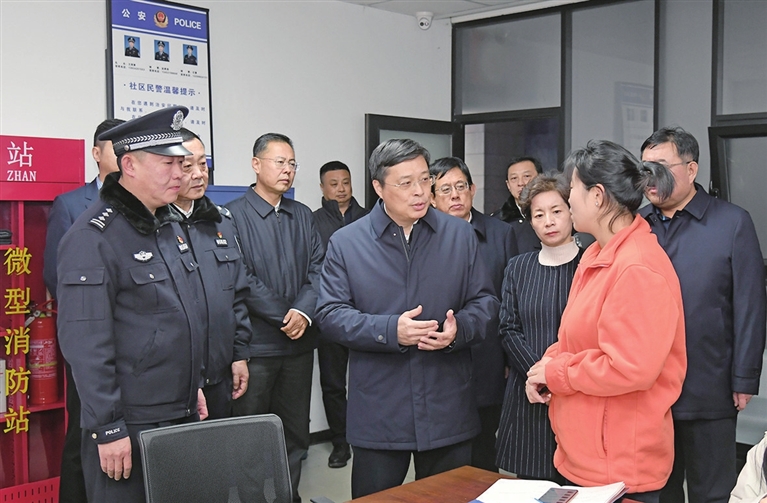 在万柏林区的一家大型商业综合体,韦韬听取商场经营管理、客流承载等情况介绍,实地察看经营秩序和消防、处突等设施,来到警务工作站与民警、网格员亲切交谈,详细了解隐患排查和矛盾纠纷化解情况,走进消防控制站查阅应急预案、值班记录,询问安保力量配置、突发事件处置流程等,叮嘱企业扛牢主体责任,认真落实人防、物防、技防措施,配齐配强安保力量,加强应急演练,提升安全防范综合能力,切实做到第一时间发现问题、第一时间妥善处置,全力打造安全放心的消费环境。