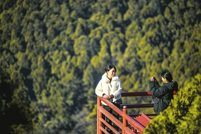 12月1日,游人在太山景区欣赏初冬美景,近距离感受自然之美。李学军 摄