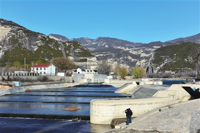 十二月四日,太原市汾河景区老龙头区域生态治理工程(三期)汾河一坝下游滚水坝向游人展现出汾河壮丽的新景观。牛利敏 摄