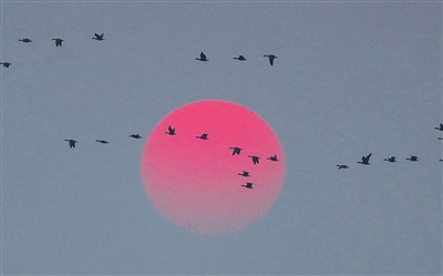 时值初冬,江西鄱阳湖区迎来大批越冬候鸟。在南昌高新区五星白鹤保护小区,成群的白鹤、天鹅等候鸟与落日余晖交错,美不胜收。新华社记者 周 密 摄