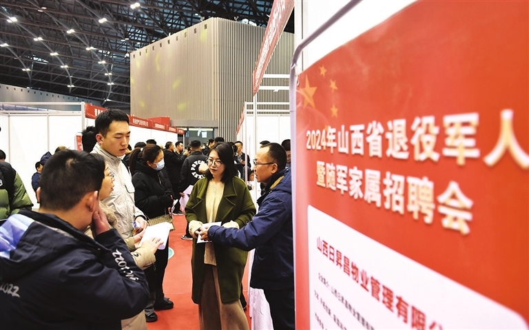 招聘会参会企业数量多、提供就业岗位多,线下线上融合联动,为求职者提供了多元选择。在山西紫林醋业股份有限公司的招聘展位前,退役士兵郝鑫波填写的应聘岗位是销售专员。“大学毕业后,在部队历练了两年,让我变得更坚韧、更有责任心,现在有信心迎接职场挑战。”他说。