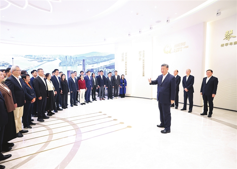 习近平同参与横琴粤澳深度合作区规划、建设、管理、服务等各方面代表亲切交流。他表示,“澳门+横琴”正在成为丰富“一国两制”实践的新示范、推动粤港澳大湾区建设的新高地、实现国家高水平对外开放的新平台。你们是横琴建设的先行者、实干家,为国家和澳门发展作出了贡献。