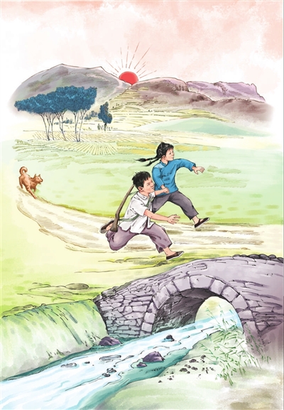 书籍封面那颗鲜红的五角星如同烈火般炽热,孩童在绿色的草地里快乐奔跑,后面的大黄狗追逐着,一幅无忧无虑的快乐图景。书名《红星树下》充满隐喻色彩,“红星”象征着革命、光明和希望,而“树下”寓意着庇护、成长和回忆。全书正文共9个章节,序言开篇,尾声完结。80年前,安冬生是王家峪村抗日儿童团的一员,如今,红星树下的安冬生爷爷陷入了回忆中。小说采用倒叙的手法开篇,勾起读者的好奇心,增强了文章的生动性,丰富故事的层次性。80年前到底发生了什么?翻动书页,跟随着作者的叙述,我也一同被带到80年前那个战火纷飞的年代。