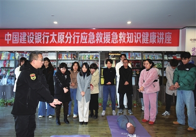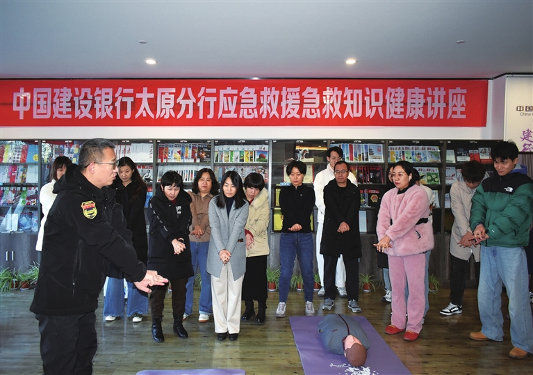 “心脏骤停,黄金抢救时间为4分钟”……近日,建设银行太原分行举办应急救援急救知识健康讲座,邀请中国医学救援协会科普分会委员单位的专业高级讲师,为全行30余名员工现场授课。 培训内容包括心肺复苏、海姆立克、简易创伤包扎等应急救助知识,旨在增加员工的急救知识、提升自救互救能力。参加讲座的员工将成为“应急救援员”,以便遇到突发情况时能够迅速作出反应,正确施救,为自己和他人的生命安全增添保障。