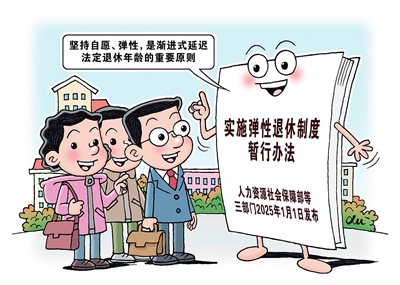 1月1日,人力资源社会保障部等三部门发布《实施弹性退休制度暂行办法》,就弹性退休的办理程序、基本养老金领取等方面作出明确规定。