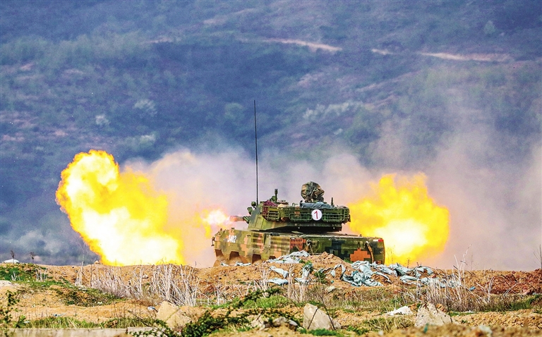 1月2日,陆军第72集团军某旅在野外陌生地域组织突击车分队进行实弹射击训练。