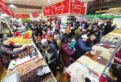春节将至,年货市场热起来。1月10日,中国煤炭博物馆年货展销活动现场,琳琅满目的商品让人目不暇接,从传统的春联、灯笼、年画,到各种美食特产,满足了消费者多样化需求。邓寅明 摄