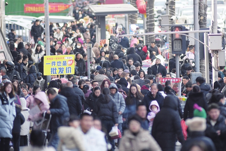 1月13日,朝阳街服装城人流如织。春节将至,消费市场呈现红火景象。邓寅明 摄