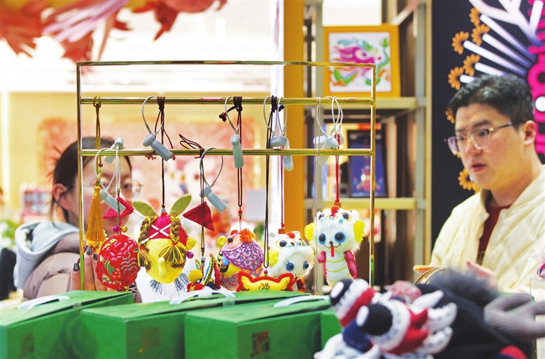 蛇年春节临近,蛇元素文创产品受到欢迎。图为1月19日,市民在钟楼街“晋礼”文创商店选购文创产品。张澍宏 摄
