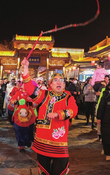 晋中,似一位从历史深处走来的雅士,带着古老而独特的社火表演恭迎新春。社火队伍如同一条蜿蜒前行的长龙,在街头巷尾欢快地游走。表演者身着华丽戏服,于熙熙攘攘的人群之中演绎着一出出传统名腔。每一个动作都是传承古老技艺的独特符号,每一个姿态都是对文化记忆的鲜活唤醒。在这里,年味浓了、百姓乐了、旅游火了……