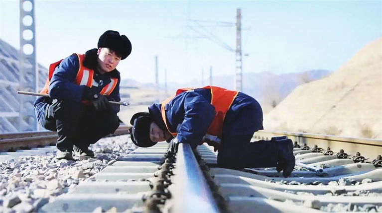 春节前夕的吕梁山寒风凛冽,气温骤降至零下25摄氏度。铁轨上温度更低,线路工们需要趴在钢轨上,检查线路钢轨、道岔是否存在裂纹。
