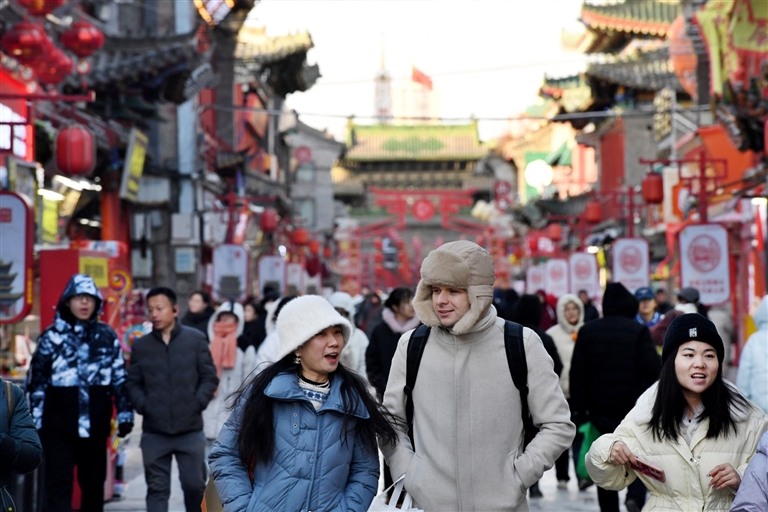 春节期间,各地游客走进我市知名景区、街区,感受“锦绣太原”的独特魅力。1月28日,游客游览太原食品街。邓寅明 摄