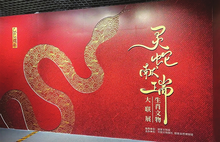 作为脊椎动物的成员,起源自陆生蜥蜴的蛇类也在演绎着别样的精彩。在紧邻中央展厅的临展厅,同步亮相的“灵蛇献瑞——2025乙巳蛇年生肖文物大联展”借着中国农历蛇年到来的契机,吸引不少观众在观“龙”后又来寻“蛇”。