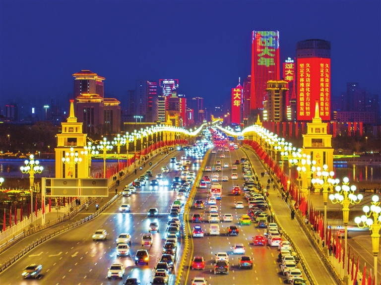 2月3日,迎泽大街华灯溢彩,洋溢着浓浓的节日气氛。李学军 摄