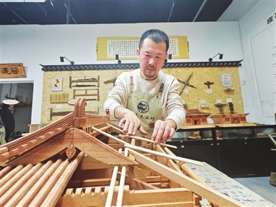 对李国伟的感受,传统古建模型制作非遗代表性传承人李荣深以为然。李荣出生于木匠世家,他已经是第5代传承人,一直以批量生产古建模型为主。来到基地后,他申请成为非遗代表性传承人,把更多精力投入到古建模型研发中,还收了几个徒弟传承技艺。“以前当木匠是谋生手段,而现在我们在做文化传播,特别是《黑神话:悟空》的爆火,带火了山西古建文化,很多南方朋友对古建产生了浓厚兴趣!”