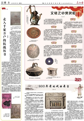 压胜钱也叫作厌胜钱,亦叫押胜钱,并非流通货币。它起源于西汉,至清末民初都有铸造。它最初的用途主要是压邪攘灾和喜庆祈福两大类。收藏于山西博物院的清代巳蛇压胜钱,属于生肖压胜钱,正面是蛇图案、名称,背面多为八卦、星官、吉语等。