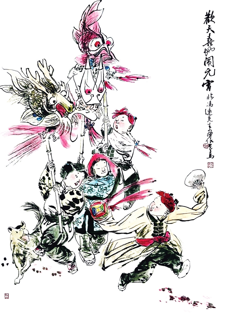 马绍民临摹冯远《欢天喜地闹元宵》