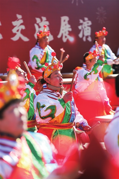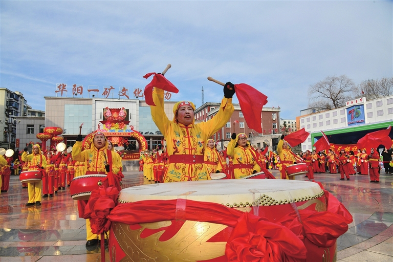 当锣鼓的轰鸣,在太原、忻州、晋中、吕梁、阳泉的上空炸裂开来——鼓槌落处,太原市公元时代城外,民俗艺人手中的火壶抖开金鳞,散作漫天星雨。鼓浪涌向忻州古城,凤秧歌帽顶的红翎便旋成朵朵山桃,嫣然含笑。鼓声激昂,和着晋中街头傩面武将手中的钢鞭,挥出千年烽烟。声浪穿山越岭,阳泉矿区的每盏花灯里,都跃动着金色的舞衣和甩开红绸的俏影,如坠落的星辰,在吕梁秧歌的嫦娥裙裾上凝成馨香。五城的鼓韵,在子夜上空交响,那是山河以大地为鼓,以长川作弦,在月光里写下的生生不息……