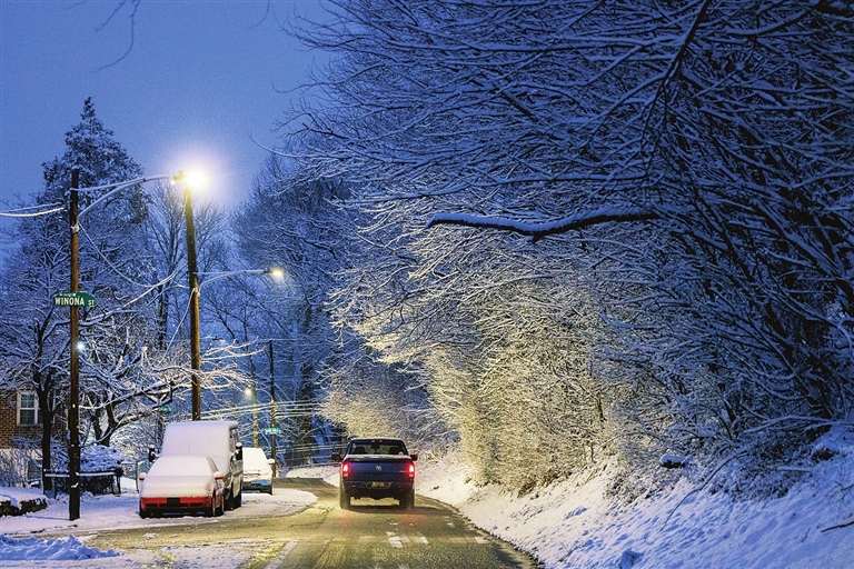 美国多地遭遇降雪天气。2月12日,在美国费城,一辆汽车在雪中行驶。新华社/美联
