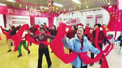 2月16日,万柏林区蓝山社区开展舞蹈公益课堂活动,充实老年人的退休时光。王韵菲 摄
