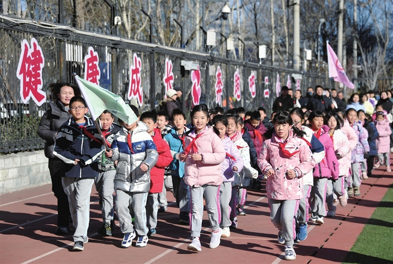 记者在北京市海淀区中关村第二小学看到,孩子们正开展课间跑步运动。“新学期,我们要带孩子们跑起来,一起拥抱阳光。”中关村第二小学教育集团体育工作负责人王金良说,学校还专门设计了折返跑、绕楼跑等多种跑步形式,每月为各年级更换跑步路线,以提升学生跑步的兴趣。