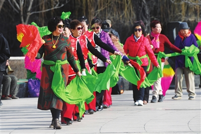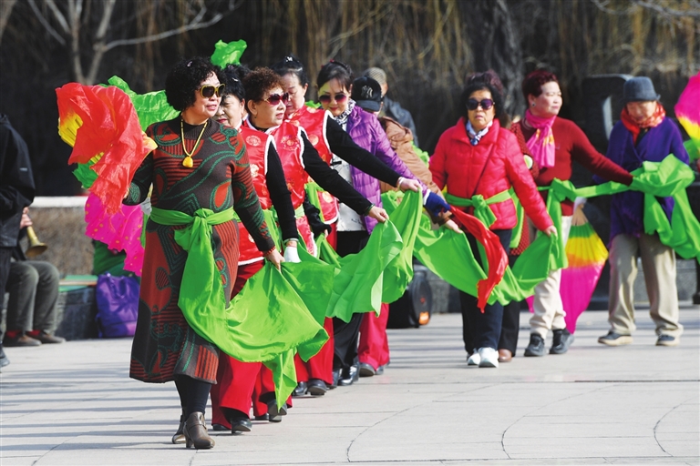 2月20日,省城龙潭公园,秧歌队伍穿红戴绿,展现出春天的活力。邓寅明 摄