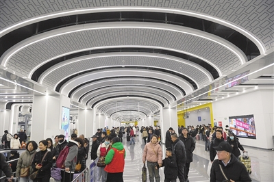 2月22日,太原地铁1号线一期开通运营。图为乘客从地铁1号线太原南站站进站乘车。牛利敏 摄