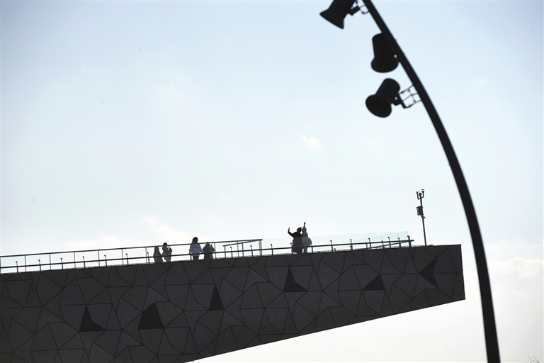 2月23日,太原植物园观景平台,游客正在享受春光。牛利敏 摄