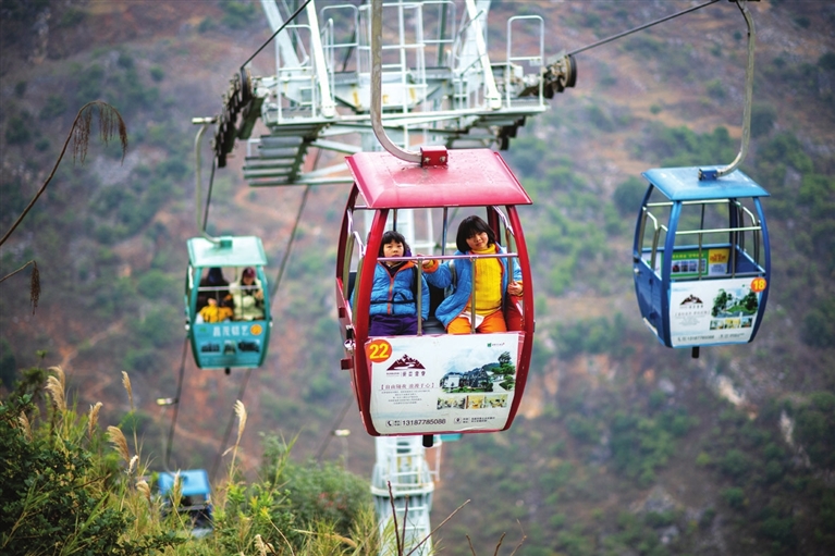 2022年,“山高谷深坡陡”的上学路迎来转机。当地的尼珠河大峡谷生态文化旅游景区建成运营,高达268米的电梯和近200米高差的高空索道缆车陆续投入使用,并对尼珠河村及附近的村民免费开放,孩子们上学有了直达山顶的“云端校车”。