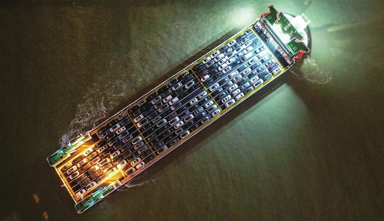午后,“创新12”轮抵达山东港口日照港岚山港区。在汽运装车现场,装载机司机们熟练地操作设备,一辆辆装满货物的车辆有序驶向码头。
