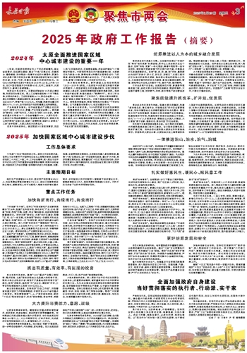 今年是“十四五”规划收官之年。政府工作总体要求是:坚持以习近平新时代中国特色社会主义思想为指导,全面贯彻党的二十大和二十届二中、三中全会精神,深入落实习近平总书记对山西工作的重要讲话重要指示精神,按照中央和省委、市委经济工作会议部署,坚持稳中求进工作总基调,完整、准确、全面贯彻新发展理念,主动服务和融入新发展格局,聚焦“六地”发展定位,进一步全面深化改革,着力扩大开放,更好统筹发展和安全,高质量完成“十四五”规划目标任务,加快国家区域中心城市建设步伐,在全国全省发展大局中发挥更大作用、作出更大贡献。