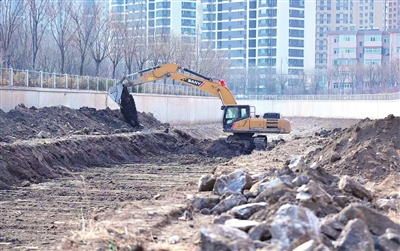 2月26日,万柏林区九院沙河生态复流工程施工现场,施工人员正在进行河道施工。该项目范围为万柏林区万亩生态园至入汾河口段,全长8.18公里。工程实施后,将极大改善河道生态环境,推动防洪工程体系建设、河湖生态环境治理等方面迈上新台阶。王韵菲 摄