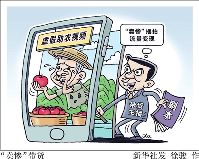 与此同时,各类短视频乱象层出不穷。出于带货牟利目的、故意营造悲情画面、恶意引导消费者的“卖惨”视频充斥网络,其中不乏虚假助农视频。