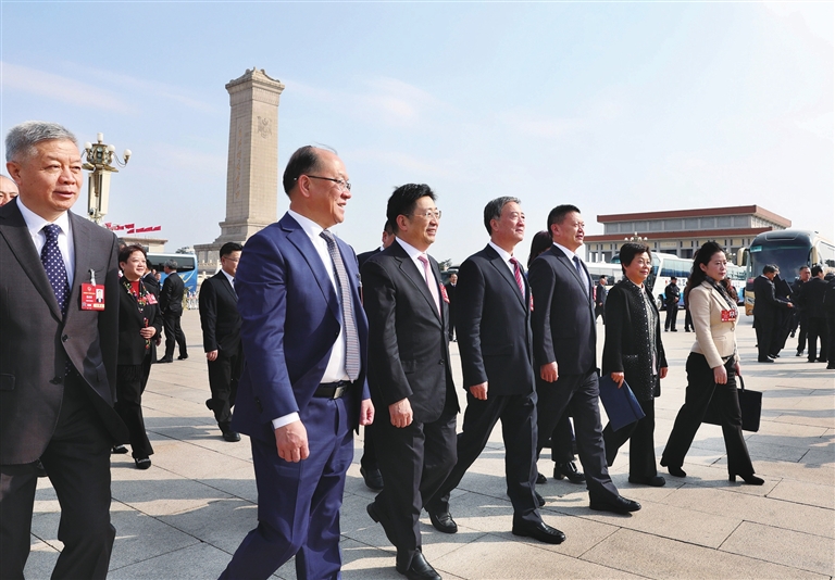 3月4日下午,中国人民政治协商会议第十四届全国委员会第三次会议在北京人民大会堂开幕。这是全国政协委员走向会场。新华社记者 吕 帅 摄