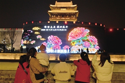3月5日晚,太原古县城里花灯璀璨依旧,游客们伴着春风赏花灯、尝美食,别有一番风味。郭苑甫 摄