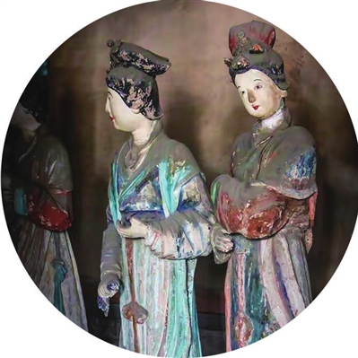 圣母殿作为晋祠的核心建筑,殿内43尊宋代彩塑堪称中国古代彩塑艺术的瑰宝,而其中33尊侍女像更是凭借栩栩如生的神态、细腻入微的表情,以及精美绝伦的服饰,成为晋祠众多文物中的璀璨明珠。这些侍女像不只是艺术史上的不朽杰作,更是深入研究宋代社会风貌、文化特色、服饰形制、发式造型与妆容风格的珍贵实物资料。
