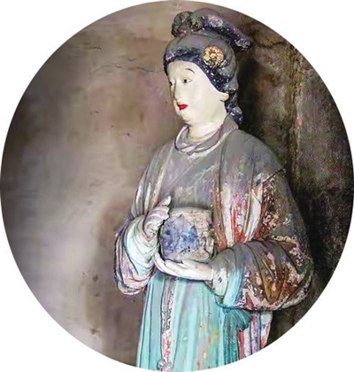 宋代女子的发式总体上呈现出一派淡雅清秀、清新自然的风尚,虽然也流行过类似于唐代的高髻,但在更长一段时期内,简约精巧、端庄大方的款式才是主流。晋祠侍女彩塑的发式与头饰同样丰富多彩。