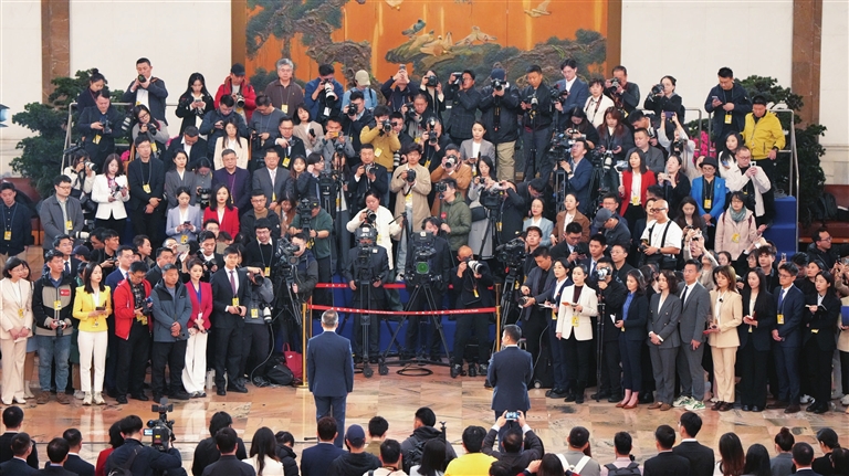 聚光灯下,一场场“代表通道”“委员通道”“部长通道”备受瞩目。经济、外交等主题记者会轮番举行,聚焦百姓关切,详解政策走向。