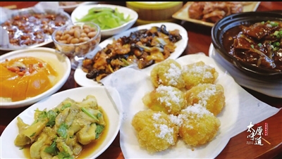 众所周知,酸爽是晋菜第一味。在太原,糖醋系菜品丰富、沙棘味甜品出圈,就是很好的证明。而本地餐饮名店的大厨们也一直致力于将这一特色做大做强。此外,在遵循古法古味的前提下,厨师们不断改良提升,积极开发新菜品,汾酒、晋祠大米、莜面、右玉羊肉、台蘑、骏枣等地方土特产,都成为他们的拿手食材,幻化出了烙刻着“晋味”的一道道美味佳肴。