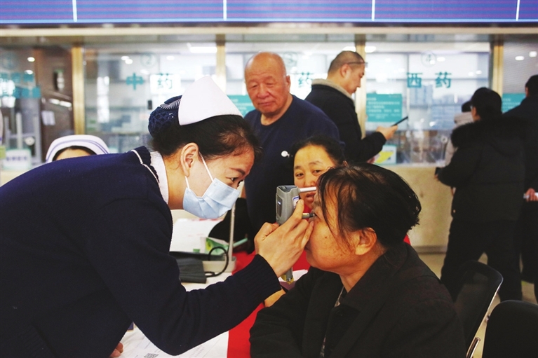 三月十日,山西省眼科医院举办世界青光眼周义诊活动。医务工作者提供了眼压测量、视力检查、裂隙灯检查、血压测量等志愿服务,同时进行科普宣传以及心肺复苏急救培训。张澍宏 摄